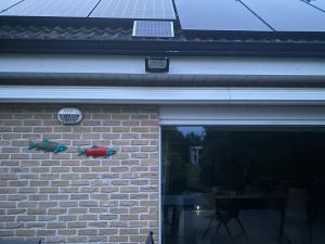 Heel tevreden van de wandlamp die wij op de dakrand aan ons terras buiten monteerden. De lamp verlicht een heel groot deel van het terras en een grote tafel voor 8 personen. Perfect om ‘s avonds nog met grote groep te eten aan tafel. Meer dan voldoende lichtsterkte ( beter dan verwacht!) Los zonnepaneel hebben wij netjes tussen andere zonnepanelen op ons dak gemonteerd. Super tevreden van onze aankoop!
