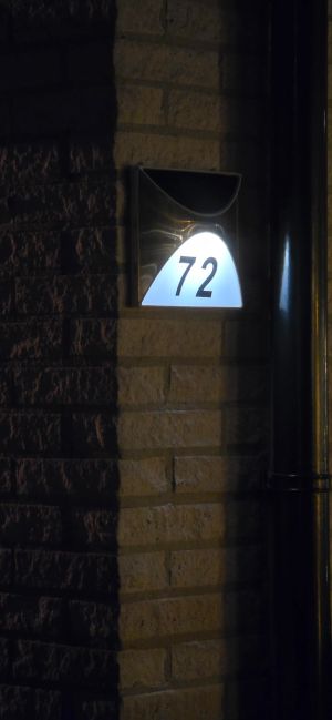U hangt de lamp aan de muur, u schakelt hem in en voor de rest heeft u er geen omkijken naar. Het solarpaneel zorgt ervoor dat de zonne-energie wordt opgeslagen in de batterijen van de lamp. Vervolgens zorgen deze batterijen ervoor dat de lamp gaat branden zodra de zon ondergaat. Er worden stickers met de nodige cijfers (0 t/m 9) en letters (a t/m f) meegeleverd, dus hij is ook geschikt voor huisnummers met toevoegingen.