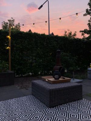 De lantaarn wordt in 3 afmetingen verkocht. Wij hebben eerst 1 lantaarn gekocht zodat we konden kijken in hoeverre hij bevalt. We wilden graag ‘s avonds een sfeervolle verlichting te hebben als we buiten of in de veranda zitten. En dat geeft de lantaarn, als hij opgeladen is geeft hij sfeervol flikkerend licht, alsof een echte kaart brandt. Enige minpuntje is dat hij vrij licht is en ik bang ben dat hij omwaait als het waait. Ik denk dat ik de andere maten er nog wel bij ga kopen.