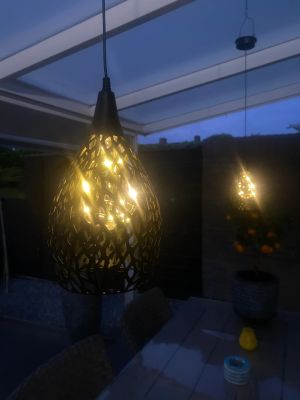 Hangen onder de overkapping boven de tafel en we zijn er heel tevreden mee