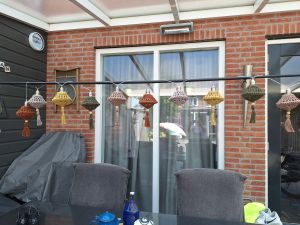 Bij een zware regenbui/storm adviseer ik om de lampjes naar binnen te halen. Bij overige dagen kunt u de verlichting buiten laten hangen.